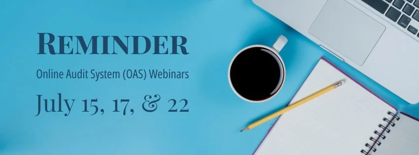 The Office of the Treasurer invites you to join the upcoming OAS Webinars, designed to provide training in the use of the Online Audit System (OAS). Each webinar will offer a brief overview of OAS followed by a detailed outline and review of one of the primary roles and its corresponding functions in the audit process.